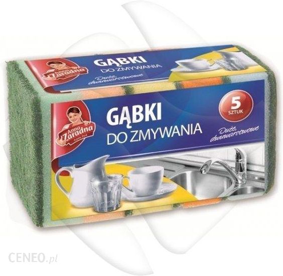 Gąbki do Zmywania A5 /Anna Zaradna- Duży rozmiar – doskonałe do czyszczenia dużych powierzchni.- Produkt wykonany z porowatej, bardzo chłonnej pianki.- Dwuwarstwowe: miękka gąbka do zmywania i szorstka, gruba fibra ułatwiająca szorowanie powierzchni.- Produkt wielokrotnego użytku.- Gąbki występują w kolorach: żółtym, różowym, pomarańczowym, zielonym oraz niebieskim; fibra zielona- Surowiec: pianka poliestrowa + fibra polipropylenowa