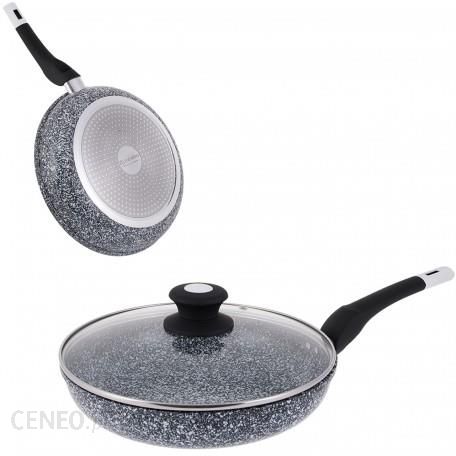 SOLIDNA PATELNIA CERAMICZNA MARMUROWA Z POKRYWKĄ Dno Indukcyjne Edenberg EB 9168 Właściwości: patelnia pokryta specjalną powłoką CERAMICZNĄ-MARMUROWĄ, która posiada właściwości antyadhezyjne – zapobiega przywieraniu, odporna na ścieranie i wysokie temperatury, zmienia kolor powłoki CERAMICZNA POWŁOKA która nie wchodzi w reakcje z żywnością gwarantuje najwyższą jakość posiłków, duża powierzchnia smażenia, nitowany uchwyt z tworzywa, pokryty silikonem przyjemnym w dotyku, wyjątkowa konstrukcja dna patelni zapewnia doskonałe przewodzenie ciepła oraz uzyskanie równomiernej temperatury na całej powierzchni patelni, dzięki temu skraca się czas przygotowywania potraw, eliminuje przywieranie potraw oraz ułatwia utrzymanie patelni w czystości, nadaje się do kuchenek elektrycznych, gazowych, ceramicznych, halogenowych, indukcyjnych. Można myć w zmywarce. Wymiary: średnica górna 28 cm, średnica dna 20 cm wysokość patelni 5.8 cm grubość ścianki 7 mm waga zestawu 1.8 kg Indukcyjne dno szybko akumuluje i rozprowadza ciepłą temperaturę Wewnątrz marmurowa ceramiczna powłoka Widok całego zestawu