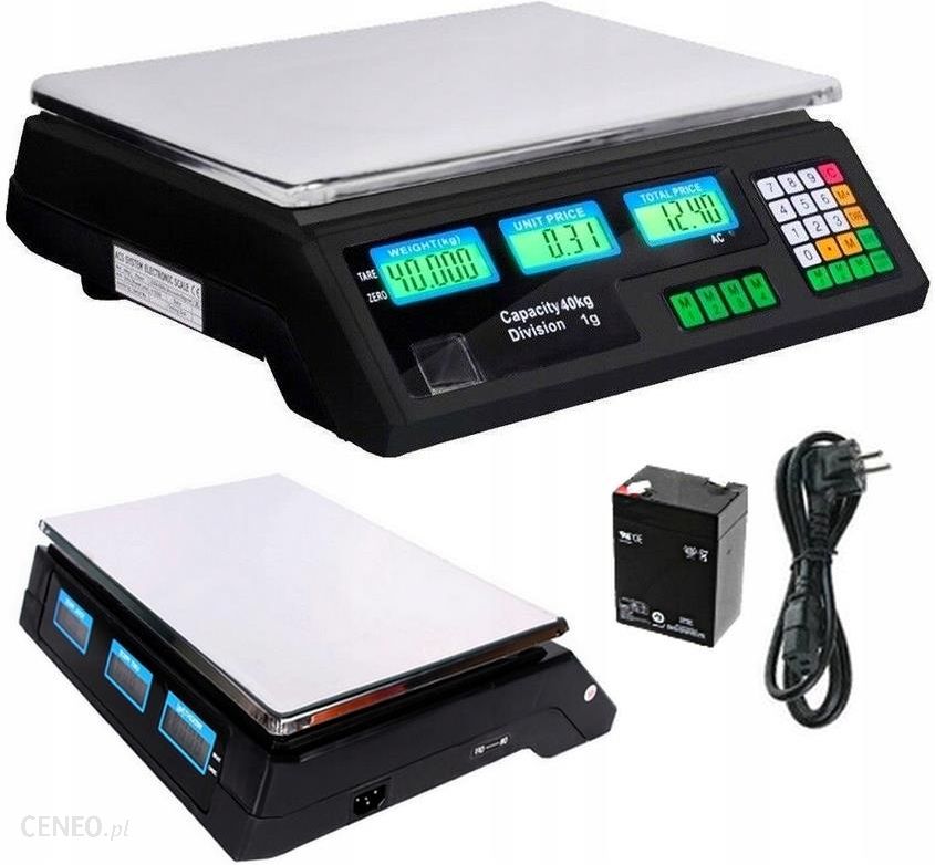 Waga sklepowa handlowa cenowa czarna 35kg / 2g1009054Numer producenta: 10030336Waga sklepowa SBS-PW-352B w kolorze czarnym umożliwia precyzyjne (dokładność do 2 g) ważenie przedmiotów ważących do 35 kg. Platforma o wymiarach 23 x 34 cm jest w stanie zmieścić produkty o różnych gabarytach.Obsługa urządzenia jest intuicyjna za sprawą przycisków umieszczonych na panelu starowania. Za pomocą klawiszy od 0 – 9 ustawiana jest cena jednostkowa danego produktu. Dzięki temu waga sama oblicza całkowitą wartość do zapłaty. Urządzenie wyposażono również w szereg funkcji, które mają na celu usprawnić pracę. Należą do nich:- Tarowanie – służąca do określenia wagi netto,- Zerowanie – ustawienie aktualnego obciążenia na wartość zerową,- Zapis danych – zachowanie bieżącej ceny jednostkowej na jednym z przycisków (M1 – M7)- Usuwanie danych (C) – anulowanie zapisanych informacji, – Dodawanie – służy do dodania aktualnej ceny całkowitej do ceny ważonego produktu. Operację można powtórzyć 99 razy,- Mnożenie – pozwala na mnożenie cen ważonych produktów.Czytelne wyświetlacze LCD, które są umieszczone na dwóch stronach wagi, umożliwiająna dokładnie skontrolowanie pracy urządzenia. Prezentują one informacje dotyczące wagi towaru, jego ceny jednostkowej i całkowitej wartości produktu. Ekrany posiadają też opcję podświetlenia, co znajdzie zastosowanie w ciemnych pomieszczeniach.Sprzęt jest przystosowany do precyzyjnej pracy w temperaturach -10C ~ 40C oraz wilgotności wynoszącej nie więcej niż 70%. O bezpieczeństwo wagi dba specjalny system ostrzegania przed przeciążeniem. W momencie gdy się włączy, urządzenie informuje o tym za pomocą dźwięku oraz informacji na wyświetlaczach. Dodatkowo klawiatura jest odporna na działanie wody i tłuszczu. Dzięki zastosowaniu baterii kwasowo-ołowiowej, waga jest w stanie pracować bezprzewodowo przez 40 godzin. Ponadto urządzenie wyłączy się, gdy nie będzie używane przez co najmniej 10 sekund. Pozwoli to na zaoszczędzenie energii. W momencie niskiego poziomy naładowania baterii, waga poinformuje o tym sygnałem graficznym.Dla zachowania stabilność zamontowano cztery nóżki, które zapewniają, że waga dobrze trzyma się podłoża. Są one również regulowane, co pozwala na ustawienie właściwego poziomu urządzenia.Cechy produktu: – Uniwersalność – zakres ważenia do 30 kg i precyzja 2 g znajdzie zastosowanie w wielu branżach,- Niezawodność – wykorzystanie nowoczesnych układów i podzespołów,- Energooszczędność – bateria kwasowo-ołowiowa umożliwiająca pracę do 40 godzin,- Wielofunkcyjność – funkcje ułatwiające pracę na urządzeniu,- Pełna kontrola – wyświetlacze LED informujące o wadze, cenie jednostkowej oraz cenie całkowitej,- Bezpieczeństwo – system ochrony przed przeciążeniem oraz klawiatura odporna na wodę i tłuszcz,- Mobilność – niewielki rozmiar i wagaParametry techniczne:- Model – SBS-PW-352B- Nr katalogowy – 10030336- Napięcie / Częstotliwość – 230 V / 50 Hz- Wymiary powierzchni ważącej (DxS) – 23 x 34 cm- Stan artykułu – Nowy- Zakres ważenia – 0,002 – 35 kg- Podziałka – 2 g- Kolor – Czarny- Klasa dokładności – III- Przeciążenie – 135%- Jednostki pomiaru – kg- Czas pracy baterii – 40 h- Temperatura pracy / magazynowania – -10C ~ 40C / -25C ~ 50C- Wilgotność pracy / magazynowania – < 70% / < 90%- Wyświetlacz – 6 x LCD- Funkcje – Tarowanie / Zerowanie / Zapis danych / Usuwanie danych / Dodawanie / Mnożenie- Wymiary (DxSxW) – 12 x 34,5 x 34 cm- Waga – 2,7 kg- Wymiary wysyłki (DxSxW) – 38 x 38 x 14 cm- Waga wysyłki – 3,3 kgW zestawie: – Waga sklepowa- Platforma- Przewód zasilania- Instrukcja PL