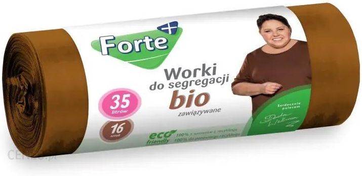 Forte+ Worki na śmieci zawiązywane do segregacji brązowe – bio 35L 16 szt.Worki na śmieci marki Forte+ są wykonane w 100% z surowców pochodzących z recyklingu odpadów foliowych z wysypisk śmieci, odpadów poprzemysłowych oraz poprodukcyjnych. Praktyczne wypustki w górnej części worka pozwalają na jego szybkiei higieniczne zawiązanie oraz wygodne przeniesienie śmieci do kontenera.Wykonane są z wytrzymałej folii LDPE. Zgrzew typu gwiazda sprawia, że idealnie dopasowują się do różnych typów i kształtów pojemników na śmieci. Pamiętaj, nasze worki po ich zużyciu oraz segregacji, mogą być ponownie wykorzystane, jako surowiec do produkcji nowych worków na śmieciMarka Forte+Wszystkie nasze produkty tworzymy z myślą o wymagających Klientach, którzy potrafią docenić ich jakość i wytrzymałość.Naszym celem jest zapewnienie produktów codziennego użytku dla Twojego domu, które spełnią Twoje wymagania. Dlatego produkty marki Forte+ to produkty wysokiej jakości w ekonomicznej cenie.W ofercie posiadamy gamę produktów do pieczenia i gotowania: folie do żywności, papiery czy rękawy do pieczenia.Nasze folie ułatwią gotowanie, pieczenie oraz przechowywanie produktów.Używając naszych papierów do pieczenia zapomnisz o smarowaniu form do ciast. Linia worków na śmieci Optima została stworzona z myślą o przechowywaniu i segregowaniu śmieci.Dbając o środowisko do produkcji worków na śmieci w 99% wykorzystujemy materiały z surowców pochodzących z recyklingu odpadów foliowych z wysypisk śmieci, odpadów poprzemysłowych oraz resztek poprodukcyjnych. W ten sposób wykorzystujemy plastic po raz drugi, trzeci, czwarty itd.W naszej ofercie znajdziesz też kompostowalne worki na śmieci wykonane z kukurydzy, które po 60 dniach ulegają całkowitemu rozkładowi.Wysokiej jakości, wytrzymałe produkty do czyszczenia kuchni i utrzymania porządku w domu sprawią, iż uciążliwe sprzątanie będzie sprawne i szybkie.Zapraszamy!…