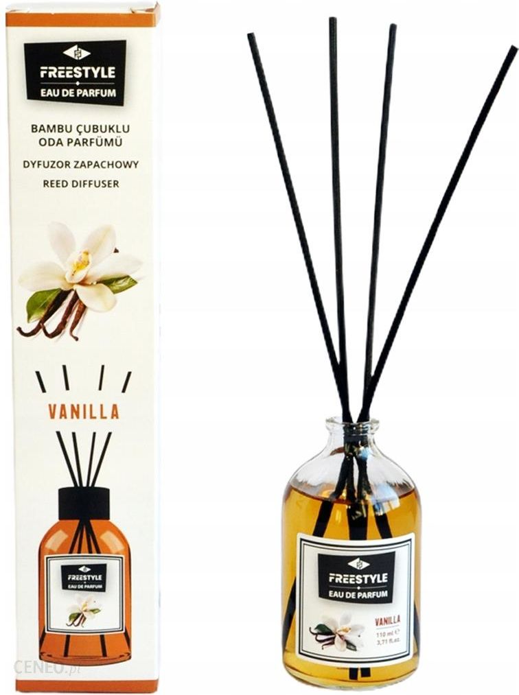 Nuty zapachowe Vanilla Room Fragrance to kwiat pomarańczy i orchidea, a nuty dolne to zapach wanilii. Zapach do pokoju, który dzięki czarnej nasadce i czarnemu sztyftowi tworzy elegancki wizerunek, to 110 ml