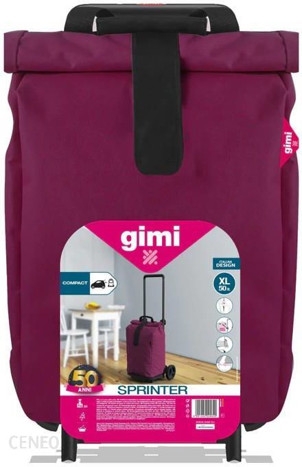 Wodoodporny worek o pojemności 50 litrów posiada teleskopowy uchwyt i kółka ułatwiające przenoszenie. Rolowane zamknięcie z zapięciem na rzep. Wózek na zakupy Gimi Sprinter ma nośność 30 kg.