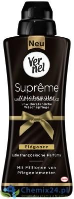 Z Vernel Suprême Elégance Black doświadczysz zupełnie nowego uczucia prania. Kremowa formuła zawiera miliony składników pielęgnacyjnych i zapewnia nieodpartą miękkość Twoim ubraniom. Inspirowany szlachetnymi francuskimi perfumami, wyjątkowy zapach zapewnia niezwykłe doznania zapachowe i długotrwałą świeżość.Pojemność: 1,2 lWydajność: 48 prań