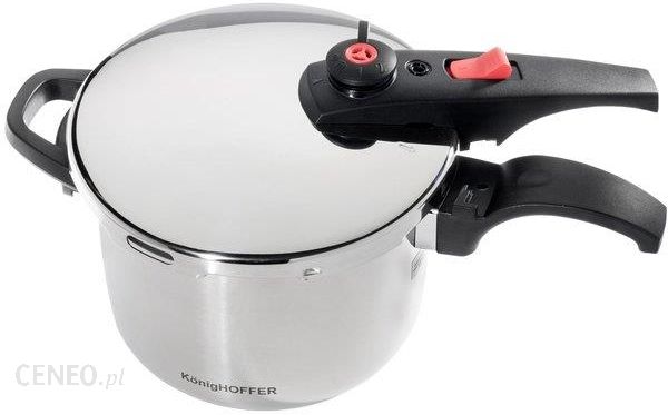 Szybkowar garnek KonigHOFFER Milano 6 l stalowyMarka: KonigHOFFEREAN: 5907558775280Korzyści:Uchwyty szybkowaru zaprojektowano w taki sposób, aby ich powierzchnia nie nagrzewała się zbyt szybko, a tym samym gwarantowała odpowiednie bezpieczeństwo i ochronę przed przypadkowym oparzeniem Składniki posiłku zachowują swoje witaminy oraz wartościowe mikroelementy, co pozwala na zbudowanie pysznego i zdrowego menu Dzięki gotowaniu na parze pod ciśnieniem czas obróbki termicznej składników jest nawet o połowę krótszy niż w przypadku klasycznych metod Dane techniczne:Szerokość (cm): 25Kolor: srebrnyLiczba elementów: 4Elementy zestawu: garnek,wkład do gotowania na parze,zawór,pokrywaWymiary opakowania: 24,5 x 40,5 x 25,5Waga netto (g): 2930Materiał: stal nierdzewna, tworzywo sztuczneWzór / ornament / faktura: błyszczącyAtrybuty: nadaje się do kuchni indukcyjnej, nadaje się do kuchni ceramicznej, nadaje się do kuchni gazowej, nadaje się do kuchni elektrycznejZabezpieczenie produktu: skala litrażu, stal 18/10Pokrywa naczynia: srebrna,stal nierdzewnaUchwyt: czarny,bakelit,zawór ciśnieniowyDno: 3-warstwowePozostałe informacje: zawór ciśnieniowy w uchwycie do pokrywki, -wkład do gotowania na parze średnica 21,3 cm, -instrukcja użytkowania w środku opakowaniaŚrednica (cm): 21,8Rodzaj opakowania: kolorowy kartonWysokość (cm): 19.5Średnica pola grzewczego (cm): 17Pojemność (l): 6.0Długość (cm): 43,5