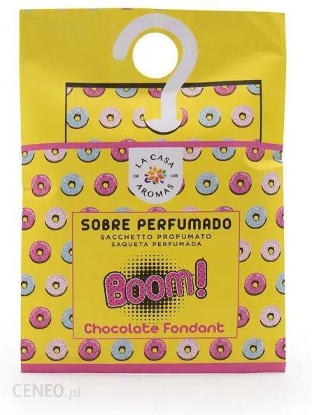 LA CASA DE LOS AROMAS POP Saszetka zapachowa BOOM! CHOCOLATE FONDANT, 100 mlZawieś saszetki zapachowe w dowolnym miejscu dzięki wykonanemu w nich otworowi.Ty wybierasz!Saszetki z napawającymi optymizmem aromatami idealne do szafek, szuflad lub dowolnych pomieszczeń.Wyjmij pachnącą saszetkę z folii zabezpieczającej i i umieść w wybranym przez siebie miejscu.NUTY ZAPACHOWE:Nuty głowy: czekoladaNuty ciała: czekolada, pieczone, kakaoNuty bazy: wanilia, benjui