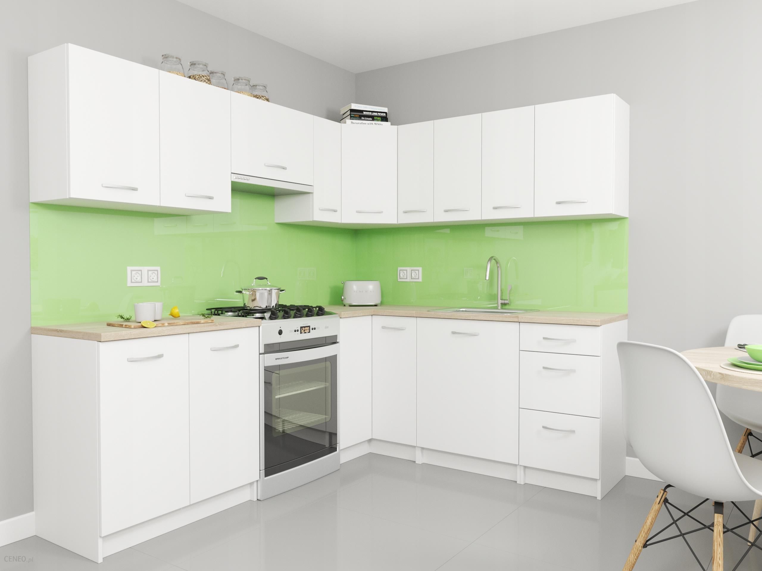 Kolekcja KretaKreta to kuchnia 230x190zestaw zawiera 4 szafki stojące oraz 7 wiszących.Fronty: Dół i Góra Biały matWymiary szafek stojących: wysokość 82 cm o głębokości 46 cm + front oraz blatem głębokości 60 cmWymiary szafek wiszących: wysokość 55 cm, głębokość 28 cm + front 1,8 cm.Blat: SonomaPoszczególne szafki:Stojąca 80 cm – szafka z półkąStojąca 40 cm – szafka z szufladamiStojąca 60 cm – szafka zlewowa bez półkiStojąca narożna 90x90Wisząca 60 cm – szafka z półkąWisząca 80 cm – szafka z półkąWisząca 60 cm – szafka okapowa o wysokości 30 cmWisząca 30 cm – 2x szafka z półkąWisząca narożna 60×60 z półkąWisząca 40 cm – szafka z półkąInformacje dodatkowe:Zestaw posiada blat dostosowany do każdej z szafekMeble do samodzielnego montażu w paczkachInstrukcja oraz akcesoria montażowe (uchwyty, wkręty, zawiasy) w cenie zestawuFronty posiadają uniwersalne naznaczenia na uchwyt, dzięki temu można wybrać stronę otwierania lewa/prawa lub zamontować inne uchwyty indywidualneMeble modułowe, każda z szafek posiada oddzielny blat, dzięki czemu szafki można przestawiać według własnej koncepcjiGłębokość szafek z blatem 60 cm, głębokość korpusu szafek 46 cm