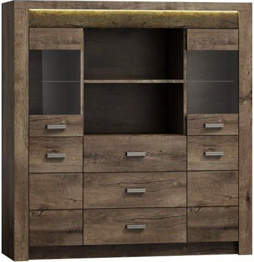 System Indianapolis dzięki dostępności 3 ciekawych kolorów znajdzie uznanie u najbardziej wymagających klientów. Elementem wyróżniającym system Indianapolis jest niewątpliwie wstawka drewnianej płyty, którą dodatkowo można podświetlić oświetleniem LED montowanym pod blatem co nadaje wnętrzu niebanalnego klimatu. Metalowe uchwyty dopełniają efektu ponadczasowej stylistyki zestawu a połączenie z kulkowymi prowadnicami z technologią pełnego wysuwu utwierdzają w jej solidności wykonania. Komoda systemu Indianapolis to potężna bryła posiadająca po bokach 4 drzwi. Za dolnymi pełnymi frontami znajdziemy półki, za górnymi zaś częściowo przeszklonymi znajdują się w podstawowej wersji szklane półki, które według uznania można zamienić na półki z płyty laminowanej.Do szklanych półek można dokupić oświetlenie LED. Po środku element posiada 3 solidne i pojemne szuflady na prowadnicach z systemem pełnego wysuwu, a nad nimi 2 otwarte półki. Do bryły można dobrać oświetlenie LED pod blat, który oświetla drewnianą listwę.Wymiary elementów:(szerokość/wysokość/głębokość):Komoda I-22 (S/W/G): 137/141,5/42 cmDODATKOWE INFORMACJE:Meble wykonane są z wysokiej jakości płyty wiórowej laminowanej odpornej na zarysowania, z obrzeżami typu ABS.Meble dostarczane są w paczkach do samodzielnego montażu, wraz z instrukcją oraz okuciami.