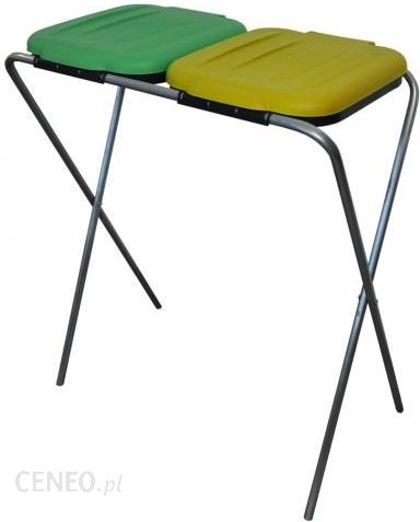 Stojak do segregacji odpadów (2-stanowiskowy) zielony, żółty Stojaki Są produkcji polskiej firmy. Klapy są równe i sztywne, rozkładane nogi. Konstrukcja jest stabilna, wykonana z ocynkowanych rurek. W stojaku zamontowane są dwie pokrywy oraz pod nimi czarna obręcz służąca do mocowania i przytrzymywania worków w stelażu. W stojakach można stosować worki o pojemności 120 litrów. Specyfikacja: Wysokość: 80 cm Szerokość: 67 cm Głębokość: 40 cm Liczba stanowisk: 2 Kolor: zielony, żółty Możliwość stosowania worków 120 litrowych Nasze stojaki To doskonała jakość i bardzo przystępna cena! Klapy wykonane są z błyszczącego plastiku, kolory są żywe! Stojak na śmieci z dwiema pokrywkami w kolorach: zielony i żółty, umożliwia segregację odpadów na szkło i plastik. Pokrywy stojaka można zdejmować, co znacznie ułatwia ich czyszczenie. Ponadto stelaż się składa i można go wygodnie przechowywać lub przewozić.