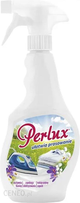 PERLUX Płyn ułatwiający prasowanie, 400 mlPoczuj prawdziwy komfort podczas prasowania!Dzięki subtelnym, kwiatowym nutom zapachowym prasowanie zamieni się w przyjemną aromaterapię!- zmiękcza tkaniny- ułatwia prasowanie- nadaje piękny wiosenny zapach- zapobiega elektryzowaniu się ubrań- łatwy i wygodny w użyciu-nie pozostawia śladów na ciemnych ubraniachSposób użycia:Wstrząśnij aerozolem następnie z odległości 30 cm rozpyl produkt na lewej stronie materiału i wyprasuj standardowo ubranie.