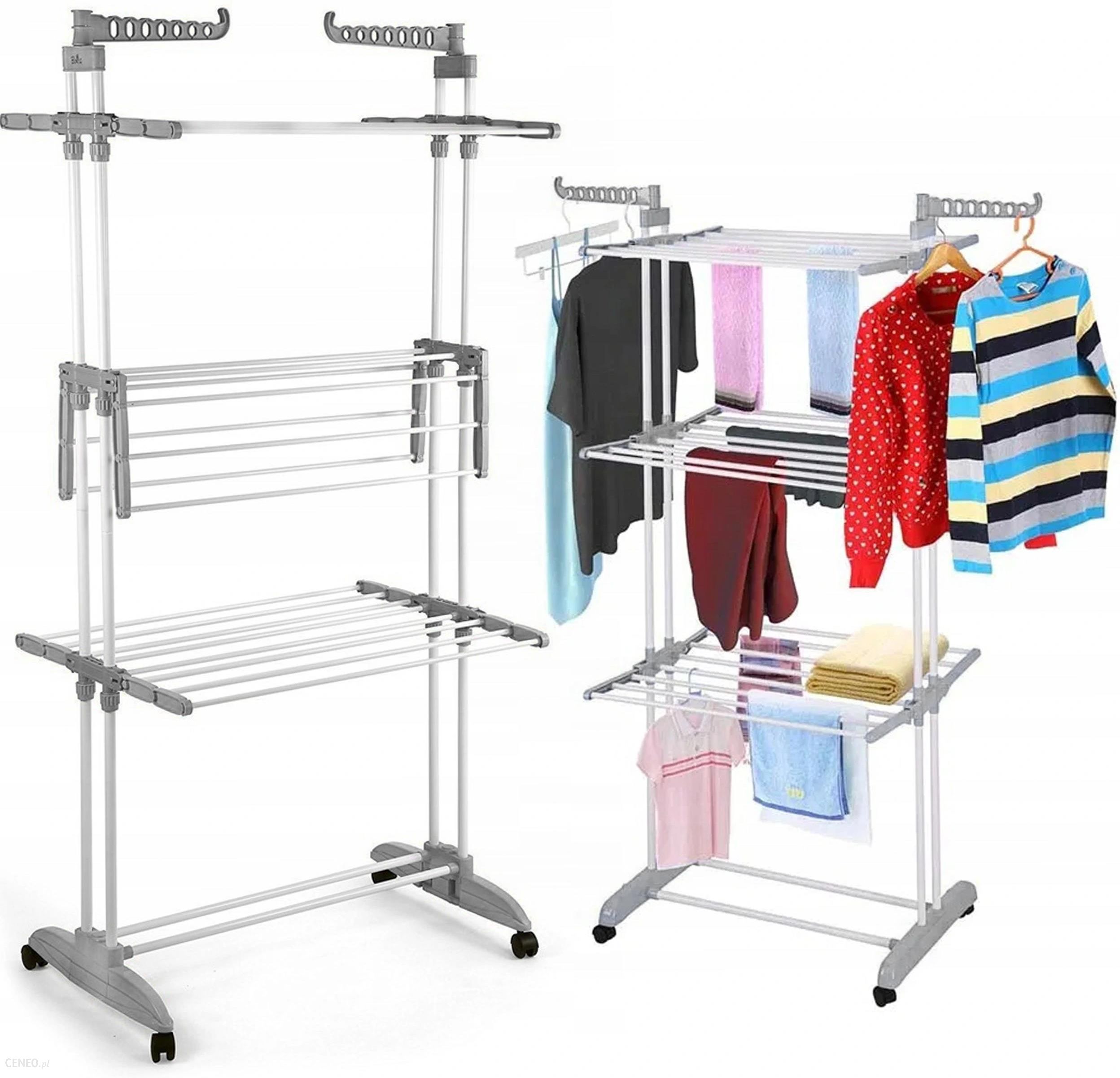 Wygodny i praktyczny niezbędnik do każdego gospodarstwa domowego.Jej minimalistyczny design sprawi, że doskonale wkomponuje się w każde pomieszczenie.Dzięki swoim wymiarom oraz wygodnemu sposobowi składania, łatwo ulokować ją w dowolnym miejscu domu.Od teraz wieszanie prania stanie się szybkie i bezproblemowe!Rozkładana suszarka na pranie z sześcioma półeczkami i dwoma ramionami 3 poziomymaksymalne obciążenie zawieszonym praniem to 40 kgzajmuje niewiele miejsca dzięki możliwości składaniawymiary: 75 cm x 126 cm (64 cm x 170 cm)do użytku wewnętrznego i zewnętrznegoSPECYFIKACJA:- długość ok. 32 m- 2 ramiona do mocowania wieszaków- 6 składanych ramion- kółka do przemieszczania z blokadą jezdnąWykonana ze stali i tworzywa sztucznego.odporna na korozję i promieniowanie UV dzięki czemu można użytkować ją na zewnątrz (balkon, ogród)Suszarka do samodzielnego montażu. Instrukcja składania umieszczona na opakowaniu.Wymiary suszarki w pudełku: 80 x 21 x 12 cm, waga z pudełkiem: 4 kg