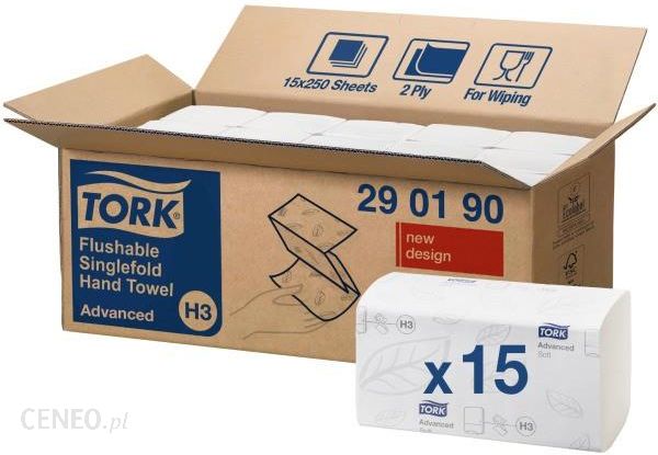 Biały, łatwo rozpuszczalny ręcznik w składce ZZ wykonany z celulozy.
