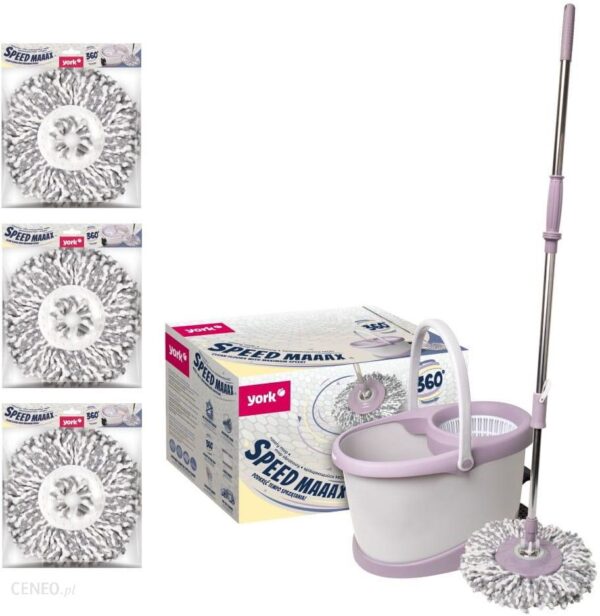 ZESTAW elegancki MOP obrotowy SPEED MAX z 3 zapasami marki YORK. Wyjątkowa, limitowana oferta w SUPER CENIE!Czyste ręceObrotowy system – płukanie i odwirowanie. Wiadro zostało wyposażone w dwa systemy: płukania i skutecznego odwirowywania.Możesz wykonać to za pomocą specjalnie zaprojektowanego pedału umieszczonego w wiadrze lub z użyciem siły rąk (mechanizm wbudowany w trzonku).Sam wybierz, który sposób jest dla Ciebie wygodniejszy i zachowaj czyste dłonie.Ruchoma płytka MOPaMOP został wyposażony w ruchomą płytkę, która dotrze nawet w trudnodostępne miejsca.Stabilne wiadroWiadro nie przesuwa się podczas sprzątania.Napełnianie i opróżnianie wiadra jest niezwykle proste.Regulowany trzonekTeleskopowy trzonek pozwala na dopasowanie długości w zależności od wysokości osoby sprzątającej.Regulowany trzonek zwiększa wygodę sprzątania.Moc mikrofibryZapas został stworzony z wysokiej jakości mikrofibry, która zbiera najdrobniejsze zanieczyszczenia z całej powierzchni podłogi.Czyści nawet bez użycia detergentów.Wymiana zapasu następuje bezdotykowo.Zobacz jak działa mop obrotowy SPEED MAX:Sprawdź niezawodny i szybki sposób na czyste podłogi – MOP obrotowy SPEED MAX marki YORK:Tagi: mopy mopy płaskie wkłady do mopa